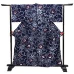 お仕立上り絵羽浴衣(女性用) 藤・扇・鹿の子 紺[プレタ浴衣 日舞 舞踊 盆踊り 稽古 お祭り]