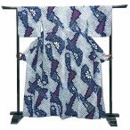浴衣 単品 女性用ゆかた【絞り調レディース浴衣】Ummm. 即日発送可 レディース浴衣 レトロ 鹿の子 青 紺地