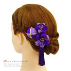 髪飾り 成人式 つまみ細工 振袖 袴 浴衣 夏祭り 花火大会 3点セット 紫 玉飾り ちりめん 房付き 鹿の子 ヘアアクセ かんざし 卒 No.9-3293