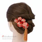髪飾り 成人式 つまみ細工 赤 振袖 袴 浴衣 夏祭り 花火大会 3点セット 玉飾り ちりめん 房付き 鹿の子 ヘアアクセ かんざし 卒 No.9-3296