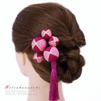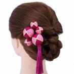 髪飾り 成人式 つまみ細工 振袖 袴 浴衣 夏祭り 花火大会 3点セット ピンク 玉飾り ちりめん 房付き 鹿の子 ヘアアクセ かんざ No.9-3295