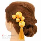 髪飾り 成人式 振袖 袴 花 浴衣 夏祭り 花火大会 5点セット 黄色 橙色 ちりめん 玉飾り ゴールド 房付き 鹿の子 ヘアアクセ か No.9-3686