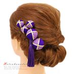 髪飾り 成人式 つまみ細工 振袖 袴 浴衣 夏祭り 花火大会 3点セット 紫 玉飾り ちりめん 房付き 鹿の子 ヘアアクセ かんざし 卒業式 和装 yof No.9-3293