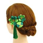 髪飾り 成人式 つまみ細工 振袖 袴 浴衣 夏祭り 花火大会 3点セット 緑 玉飾り ちりめん 房付き 鹿の子 ヘアアクセ かんざし 卒業式 和装 yof No.9-3292