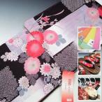 「ViVi」浴衣反物 菊や梅や藤や牡丹(黒)
