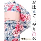 浴衣 単品 《ViVi Fancy》お仕立て上がり浴衣 紺 パステル 花綿100% レトロ キュート シック 大人 モダン 粋 古典 ゆかた レディース 女性 20代 30代 40代 ブランド ブランド浴衣