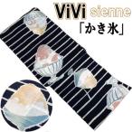 ゆかた 「かき氷」 ViVi ファンシー ボーダー柄 綿ゆかた 仕立上り品 紺 カキ氷 ネイビー 夏祭り かわいい 綿 浴衣 レディース 単品 モダン プレタ浴衣 新品