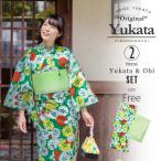 (Prices down2)浴衣 レディース セット オリジナル 「グリーン 梅と橘」お仕立て上がり浴衣 フリーサイズ 浴衣 帯の浴衣2点セットss2512ykl10