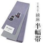 浴衣 帯 レディース 単品 大人 半幅帯 送料無料 綿麻 京の帽子絞り 薄藤色地猫柄 女性 浴衣帯 半巾帯 女性 和装帯 オリジナル