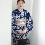 浴衣 レディース セット utatane 有松絞り 浴衣3点セット 名桐商店/ 染色 北條染工/生地 流れる椿 紺 極み フリーサイズ 浴衣セット(ゆかた・帯・下駄)