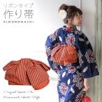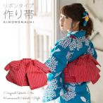 (Prices down)浴衣 帯 リボンタイプ 結び帯単品「赤×ネイビー縞」日本製 京都きもの町オリジナル 作り帯 ゆかた帯 浴衣帯ss2512oyk10