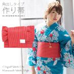 (Prices down)浴衣 帯 角出し風タイプ 結び帯単品「赤×ネイビー縞」日本製 京都きもの町オリジナル 作り帯 ゆかた帯 浴衣帯ss2512oyk10
