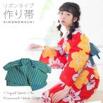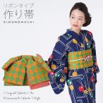 (Prices down)浴衣 帯 リボンタイプ 結び帯単品「橙×緑 千鳥」日本製 京都きもの町オリジナル 作り帯 ゆかた帯 浴衣帯ss2512oyk10