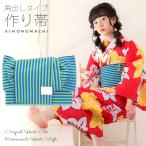 (Prices down)浴衣 帯 角出し風タイプ 結び帯単品「青緑×イエロー縞」日本製 オリジナル 作り帯 ゆかた帯 浴衣帯ss2512oyk10