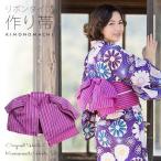 (Prices down)浴衣 帯 リボンタイプ 結び帯単品「パープル縞」日本製 京都きもの町オリジナル 作り帯 ゆかた帯 浴衣帯ss2512oyk10