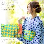 (Prices down)浴衣 帯 角出し風タイプ 結び帯単品「黄×青緑 千鳥」日本製 京都きもの町オリジナル 作り帯 ゆかた帯 浴衣帯ss2512oyk10