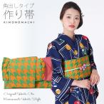 (Prices down)浴衣 帯 角出し風タイプ 結び帯単品「橙×緑 千鳥」日本製 京都きもの町オリジナル 作り帯 ゆかた帯 浴衣帯ss2512oyk10