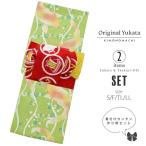 浴衣 レディース セット KIMONOMACHI 「グリーン レトロ花」浴衣、浴衣帯の2点セット F(フリー) 京都きもの町オリジナル 綿浴衣ss2512ykl10