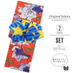 浴衣 レディース セット KIMONOMACHI 「オレンジレッド 薔薇」 S,F,TL,LLss2512ykl10