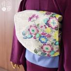 夏帯 夏 名古屋帯 花波 薄グレー 日本製 花柄 カラフル 紫 召しませ花 麻帯 リネン 京袋帯 京袋名古屋帯 夏なごや帯 浴衣帯 レディース 女性 浴衣 着物