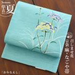 [夏帯] 夏名古屋帯 おみなえし (麻/ミント/KK-NT-002) リネン 日本製 名古屋帯 京袋帯 京袋名古屋帯 女郎花 花 ススキ 浴衣帯 単衣 浴衣 着物 召しませ花