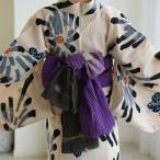 兵児帯 浴衣 誉田屋源兵衛 ラミーコットン絞り兵児帯 宵闇 帯の誉田屋謹製 レディース 女性 日本製 国産 夏 夏着物 天然素材 伝統工芸 麻 綿 黒 紫 帯単品