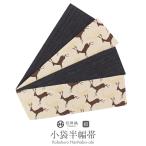 半幅帯 正絹 リバーシブル クリーム 茶 鹿 西陣織 小紋 紬 浴衣 SALE
