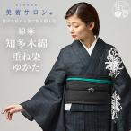 美術サロン 浴衣 重ね染 知多木綿 麻混 フォレスト オフホワイト×ブルー 白 青 日本製 仕立て上がり ゆかた レディース 婦人用 夏 着物 女性用 上品 BS80