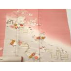 リサイクル着物 付下げ 中古 正絹 仕立て上がり 袷 友禅 落款有 ピンク系 rr0756b