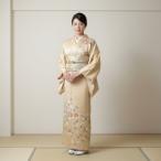 付下げ 着物 金彩加工 本加工 手染め 地紋 黄ベージュ 花柄 正絹 リサイクル 中古 仕立て上がり 身丈170 裄68 TLサイズ みやがわ sb12194