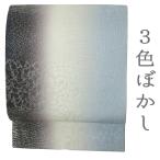 袋帯 正絹 全通 仕立て上がり 水色 白 紫 縦ぼかし 三色ぼかし 銀通し 市松 花唐草 友禅染 手染め 西陣織 着物 カジュアル No.i6-2034