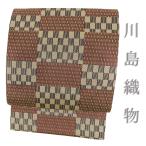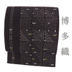 名古屋帯 博多織 正絹 紫 市松 葉 リサイクル 博多帯 カジュアル お洒落 八寸 仕立て上がり No.i6-2358