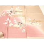 付下げ 身丈163cm 裄丈68.5cm L 袷 岡本幸治 落款あり 菊 椿 ぼかし ピンク 正絹 逸品 中古