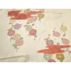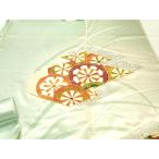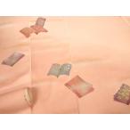 反物 秀品 付下げ 草花 亀甲 金彩 オレンジ 正絹 中古