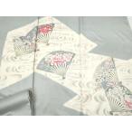 美品 付下げ 身丈153.5cm 裄丈63cm S 袷 扇 松梅 ぼかし 灰白 正絹 名品 中古