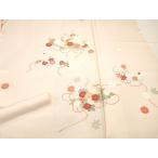 反物 秀品 付下げ 扇面 草花 金彩 刺繍 ベージュ 正絹 中古