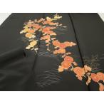 平和屋着物▼付下げ 反物 着尺 刺繍 枝垂れ花文 黒地 金彩 逸品 未使用 DAAY7378zy