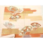 平和屋着物▼付下げ 解き反物 着尺 八掛付き 扇面吉祥花文 金彩 逸品 DABC7276we