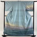 付下げ 身丈159cm 裄丈66cm M 袷 青灰色 正絹 秀品 一つ紋 中古