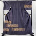 付下げ 身丈166.5cm 裄丈69cm L 袷 草花 横縞模様 金彩 絞り 灰紫 正絹 名品 中古