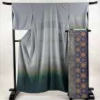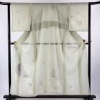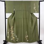 付下げ 身丈160cm 裄丈66.5cm M 単衣 葉柄 鳥 金銀糸 灰緑 正絹 秀品 中古