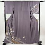 付下げ 身丈155.5cm 裄丈66cm M 薄物 絽 宝尽くし 松竹梅 刺繍 金銀糸 薄紫 正絹 名品 中古