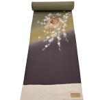 反物 秀品 付下げ 色紙 草花 金彩 ぼかし 茶緑色 正絹 中古