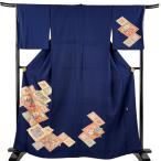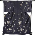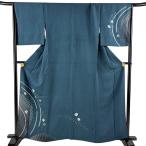 美品 付下げ 身丈163.5cm 裄丈67.5cm L 袷 落款あり 草花 花菱 紺色 正絹 秀品 中古