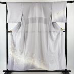 付下げ 身丈164cm 裄丈67.5cm L 袷 扇 草花 金糸 刺繍 薄紫 正絹 秀品 中古