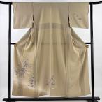 美品 付下げ 身丈166.5cm 裄丈67cm M 薄物 絽 草花 間垣 ぼかし ベージュ 正絹 秀品 中古