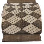 美品 袋帯 秀品 関西仕立て 幾何学模様 縞 金糸 焦茶色 お太鼓柄 正絹 中古