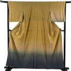 美品 付下げ 身丈157.5cm 裄丈63.5cm S 袷 鈴乃屋 木目 ぼかし 山吹茶色 正絹 秀品 一つ紋 中古