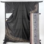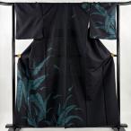 付下げ 身丈163cm 裄丈66.5cm M 袷 落款あり 草花 シルエット 黒 正絹 名品 中古