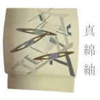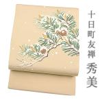 秀美 名古屋帯 十日町友禅 正絹 渋ベージュ 紅葉 もみじ 浜ちりめん 松寿縮緬 友禅染 仕立て上がり 九寸 お洒落着 カジュアル No.6-0859